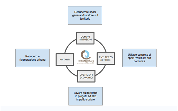 Lo facciamo coinvolgendo i soggetti presenti sul territorio, dai Comuni / Istituzioni agli Enti del terzo settore e agli operatori socio economici.